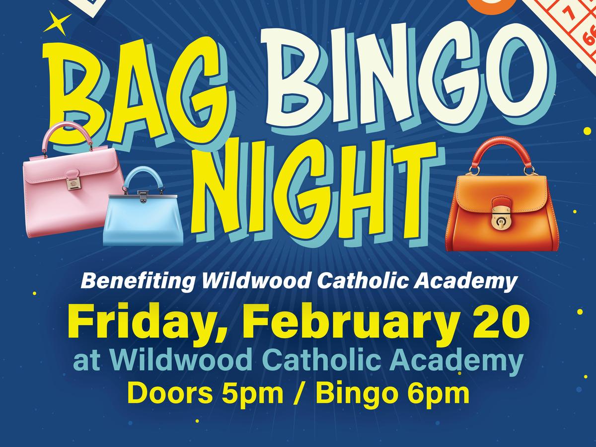 Join us for Bag Bingo Night benefiting Wildwood Catholic Academy on Friday, February 20 at Wildwood Catholic Academy. Doors open at 5:00 PM and Bingo begins at 6:00 PM. This is a BYO snacks and non‑alcoholic drinks event, and all players must be 18 or older.